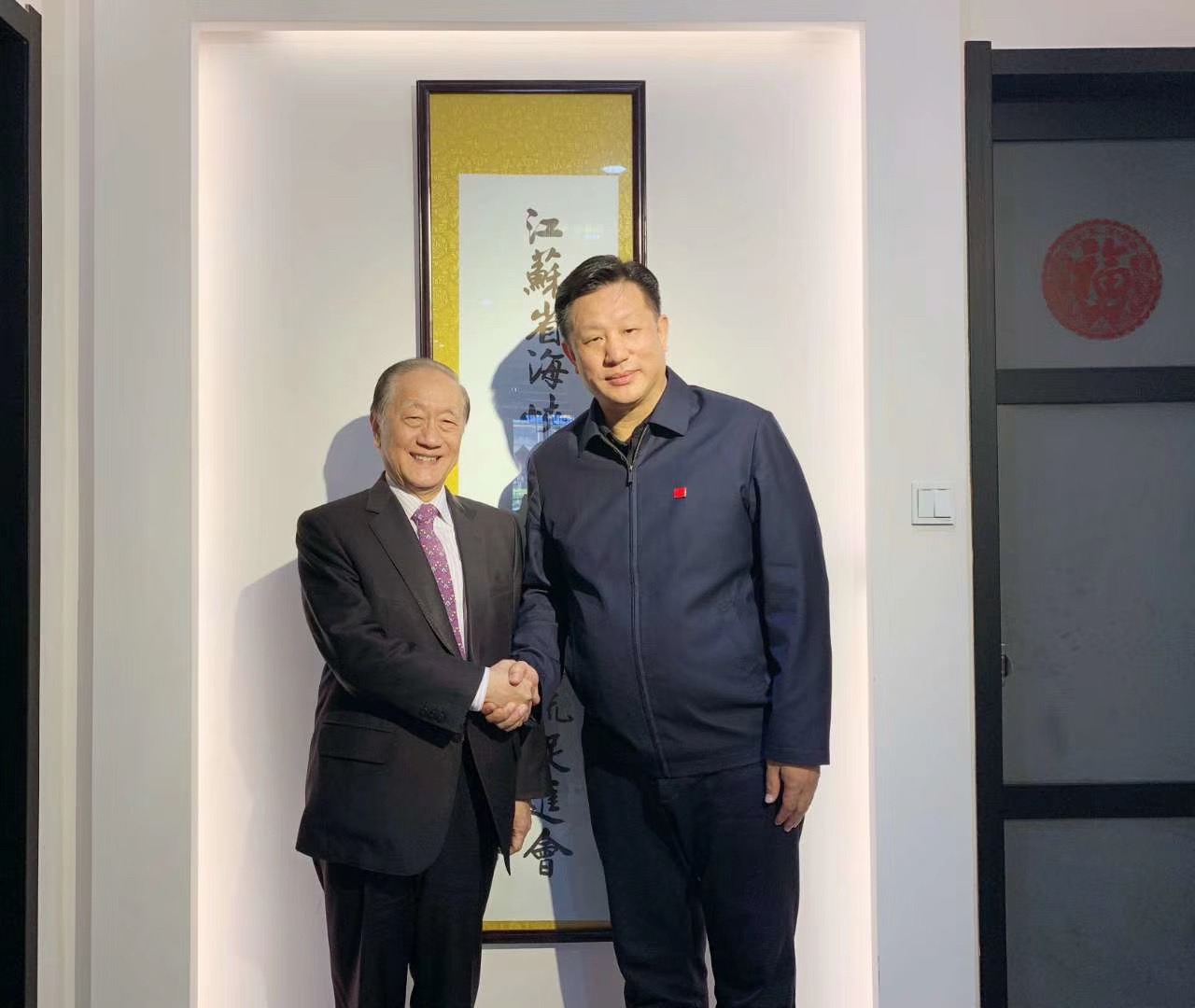 4月19日,台湾新党郁慕明主席再次来到海促会指导交流。海促会连庆涛会长与郁主席亲切交流,针对近针对近期两岸局势,郁主席指出,和平交流要有目标:和平统一、两岸愿景。直接说,不转弯抹角。黑就是黑,白就是白。郁主席强调,九二共识是在一个中国基础上,目的是追求国家统一、民族复兴。