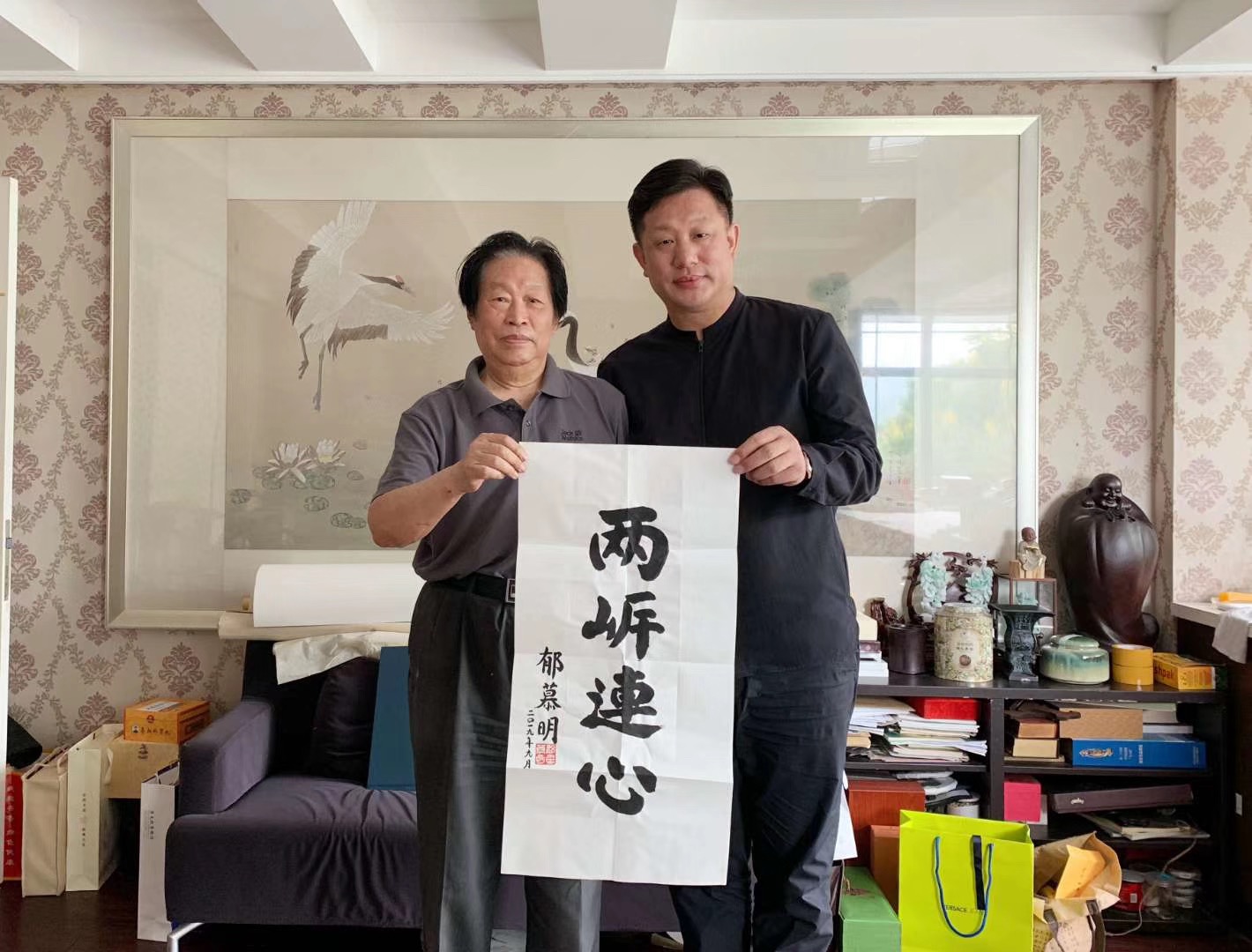 2019年9月4日上午,海促会连会长一行拜访海促会名誉主席喻老,连庆涛会长转送新党郁慕明主席为喻继高艺术馆题写的墨宝,并送上祝福,祈愿喻老作品展如期圆满举行。喻继高老师深表感谢,赞叹两岸同是炎黄子孙,两岸同胞心手相连,展望两岸和平统一的美好愿景。