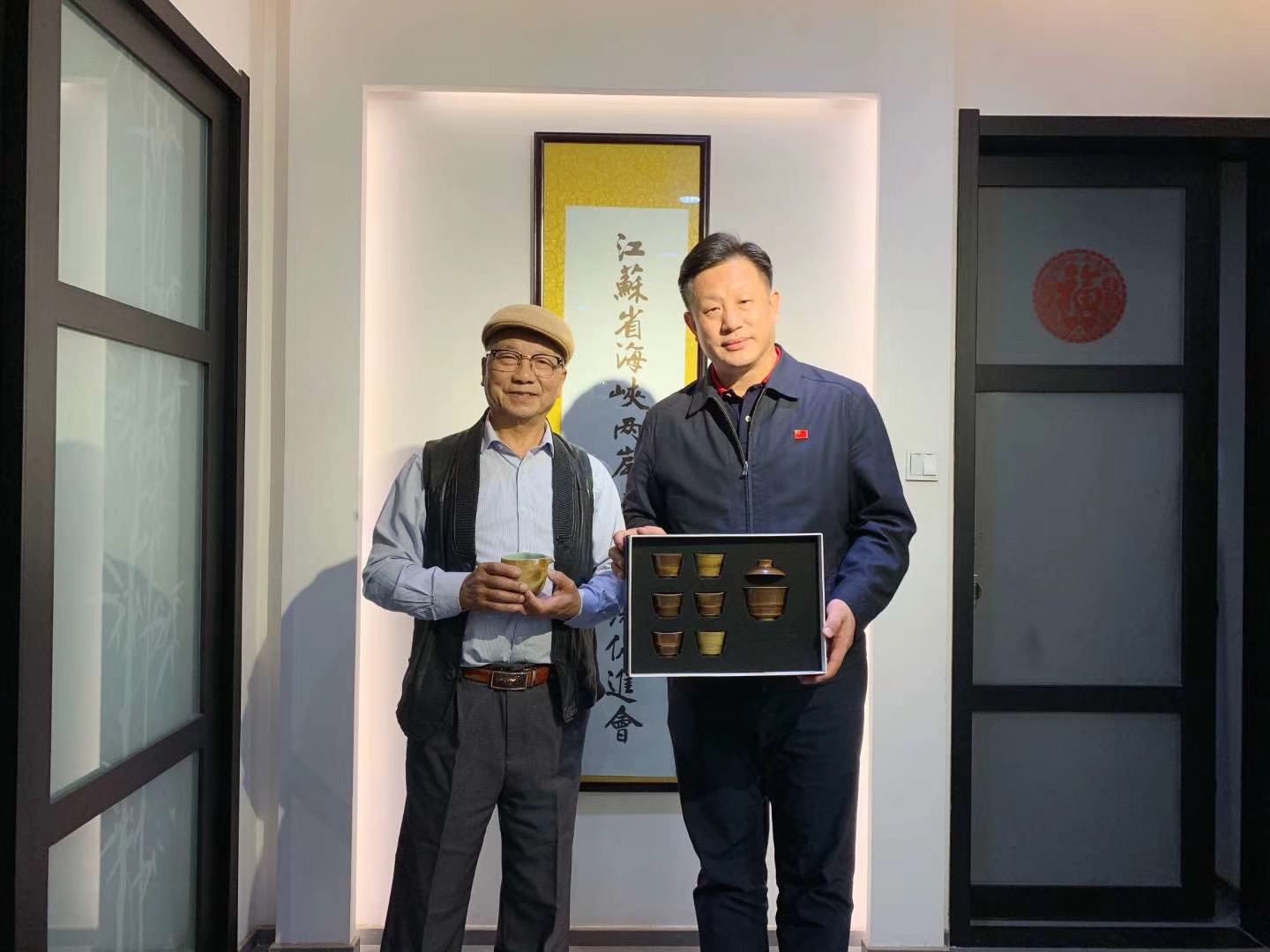 2019年11月5日,热烈欢迎中国工艺美术大师、国家级非遗龙泉青瓷唯一传承人徐照兴老师到海促会交流指导。感谢徐老师赠海促会的作品书籍。