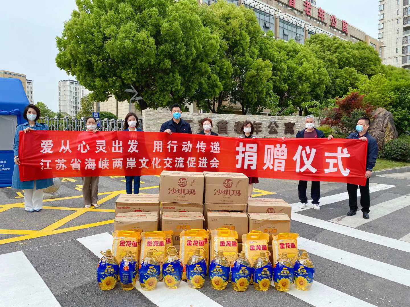2020年4月16日,正值海促会成立四周年之际,海促会向南京建邺区福利院捐赠400斤米,80斤油,10箱面包,希望能尽一份力给老人一些关爱。建邺区福利院对海促会表示感谢,并表示将切实管好用好捐赠物资,绝不辜负捐赠者的每一份爱心。
