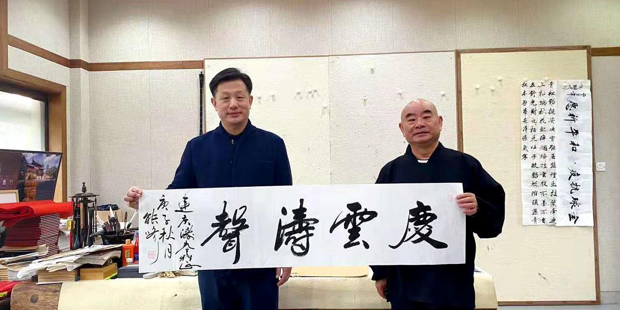 金秋登高望远!有缘拜会扬州大明寺方丈能修大师,感谢能修大师赠妙笔墨宝《庆云涛声》!
